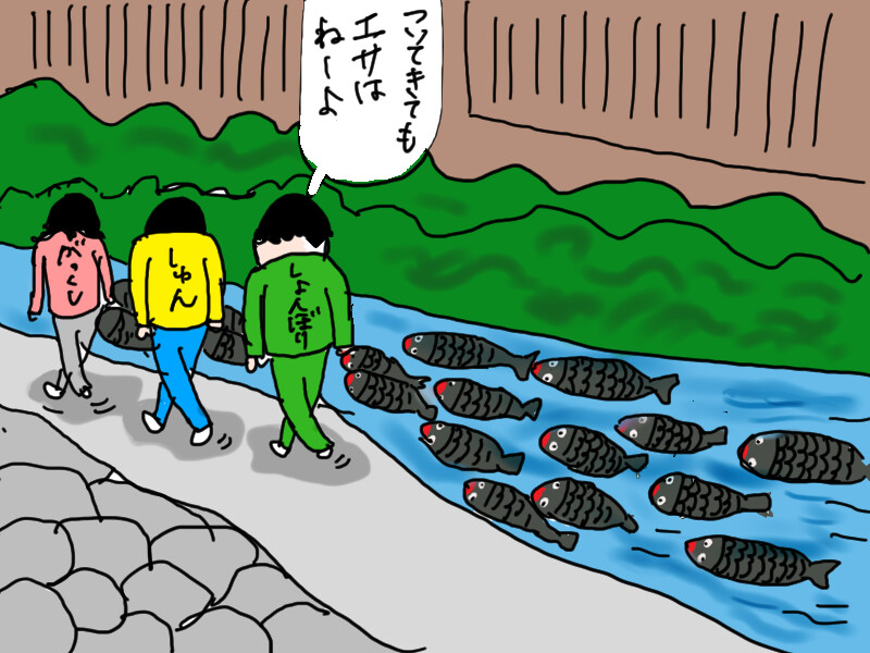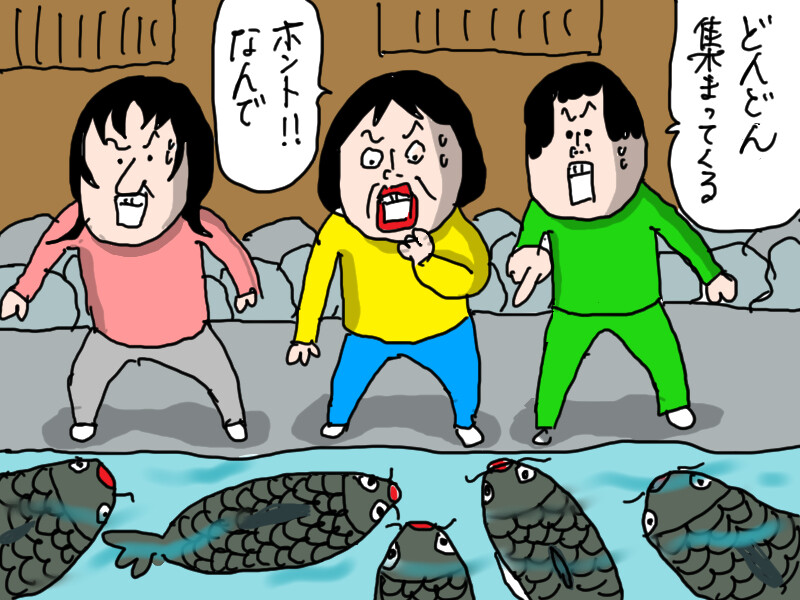 まるまるした鯉軍団みんな赤くちびるなところがカータンさんのマンガらしくて笑っちゃいました!