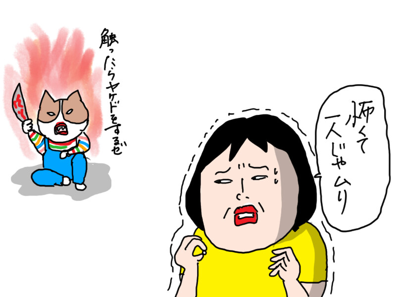 爪を切ろうもんなら、チャッキー状態です