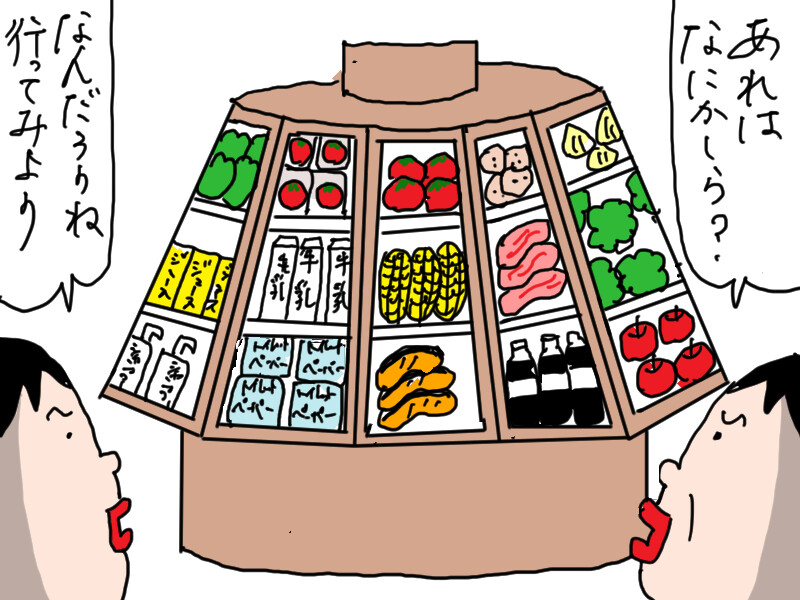 (スーパーにエアコンないよ!)