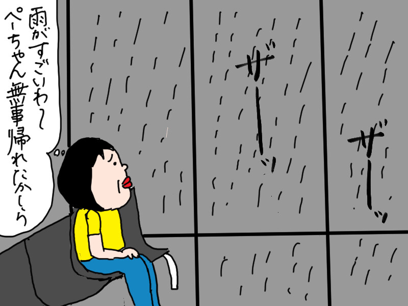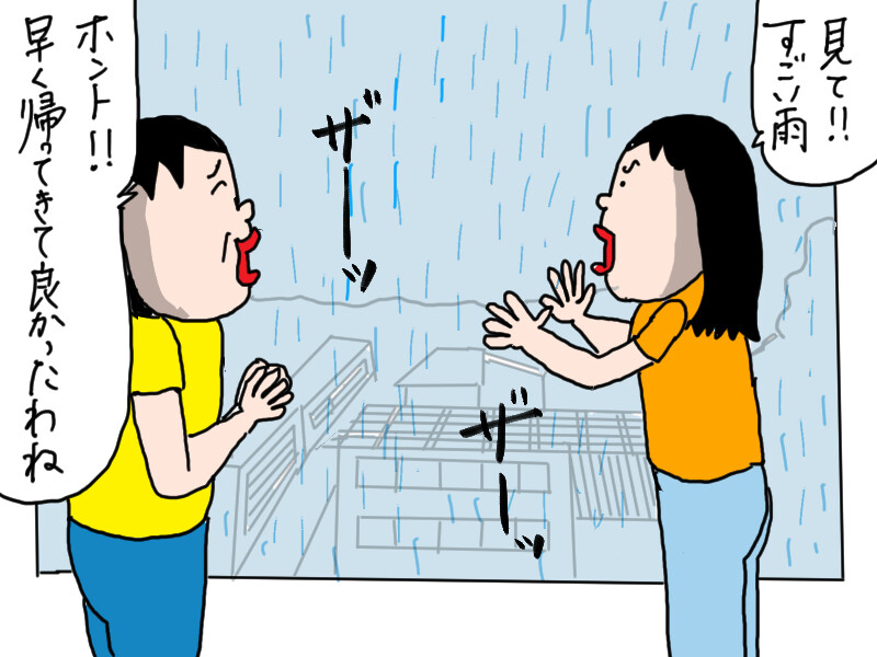 部屋に着くと、突然大雨が降ってきた。