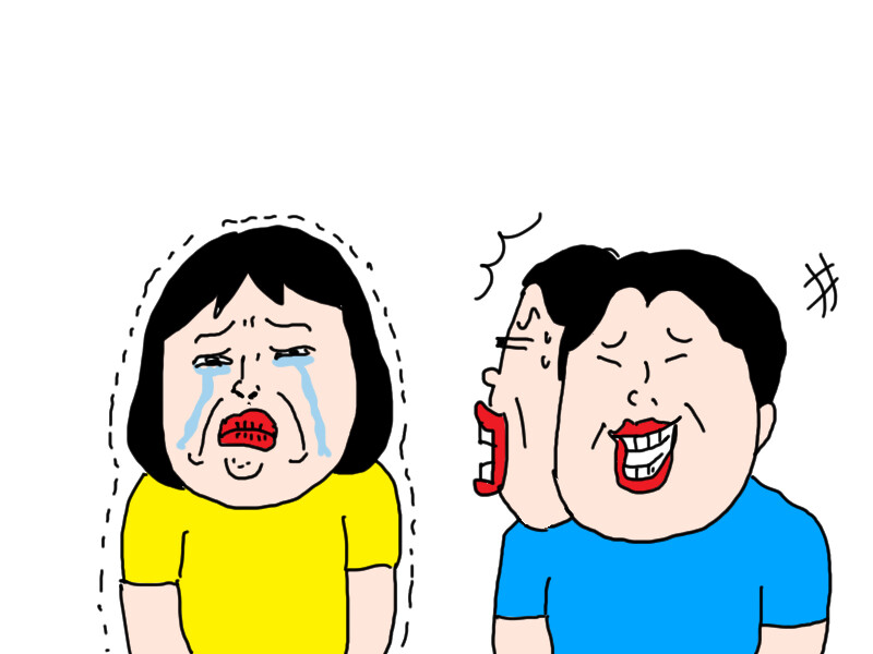 回想シーンのカータンをお食事に誘うY子さんの縦ストライプのお洋服、