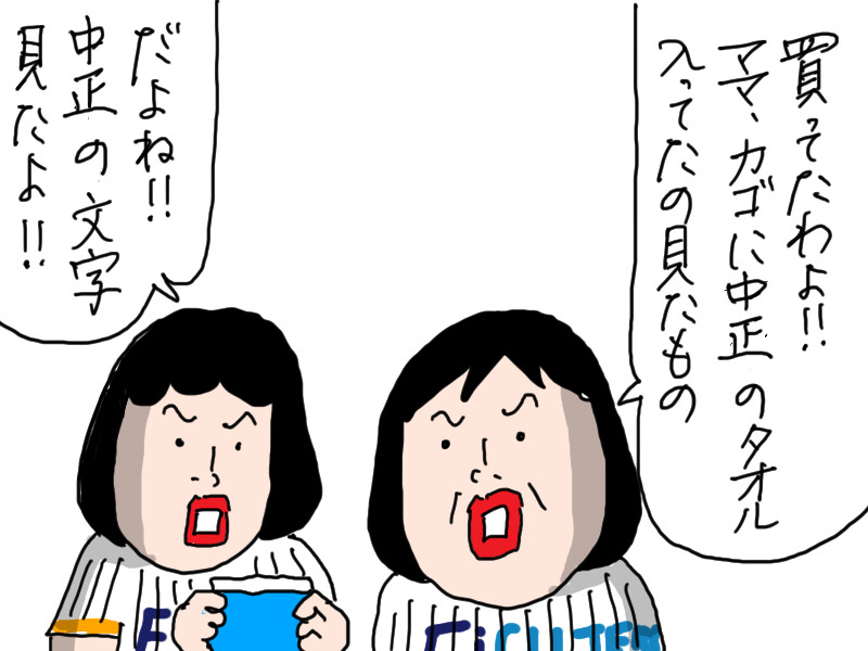 次女が万波中正のタオルだと思って