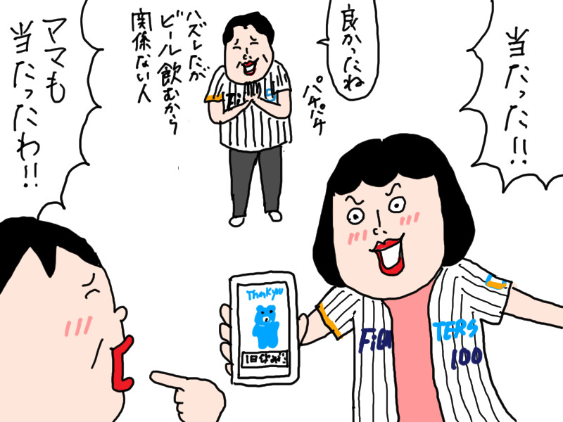 そして私は旦那とよくエスコンに応援行くんですがコカコーラやってる期間3回行って3回とも私も旦那も抽選外れてコカコーラ飲めなかったです(´;ω;`)