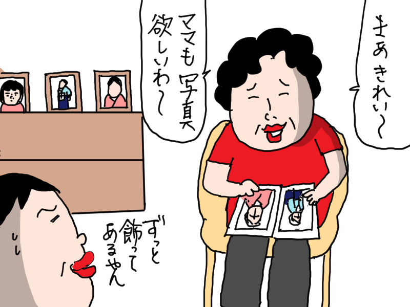 このネタを話そうと決めて以来、困ることがなくなった。母は楽しそうに聞いているし、楽しそうにフォトアルバムをめくっているし。