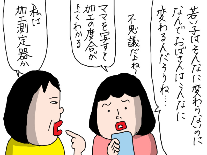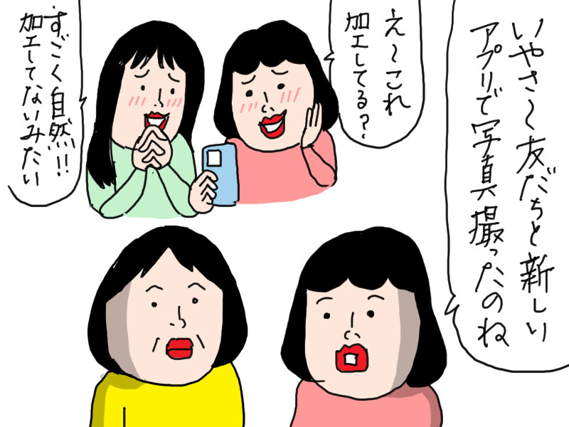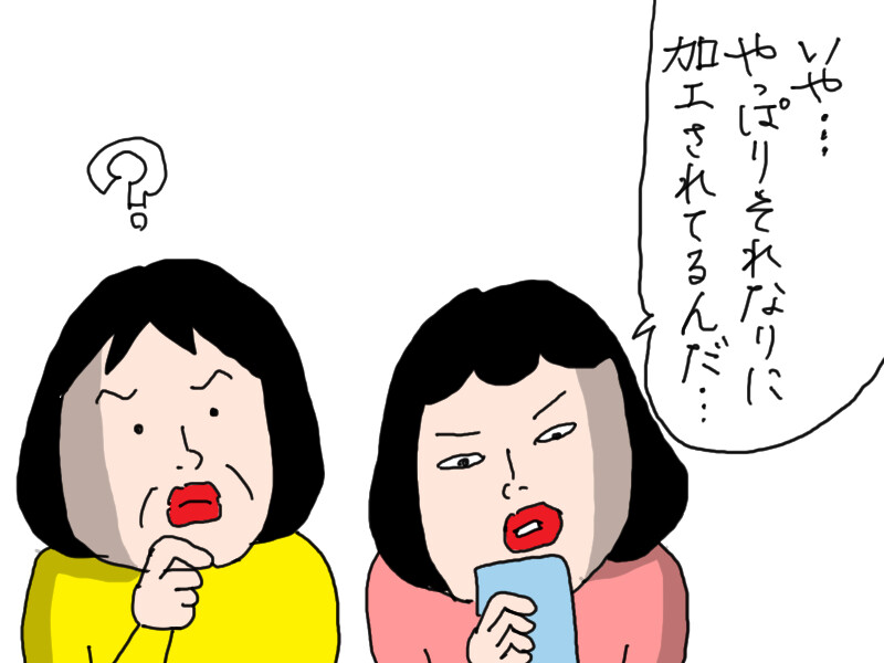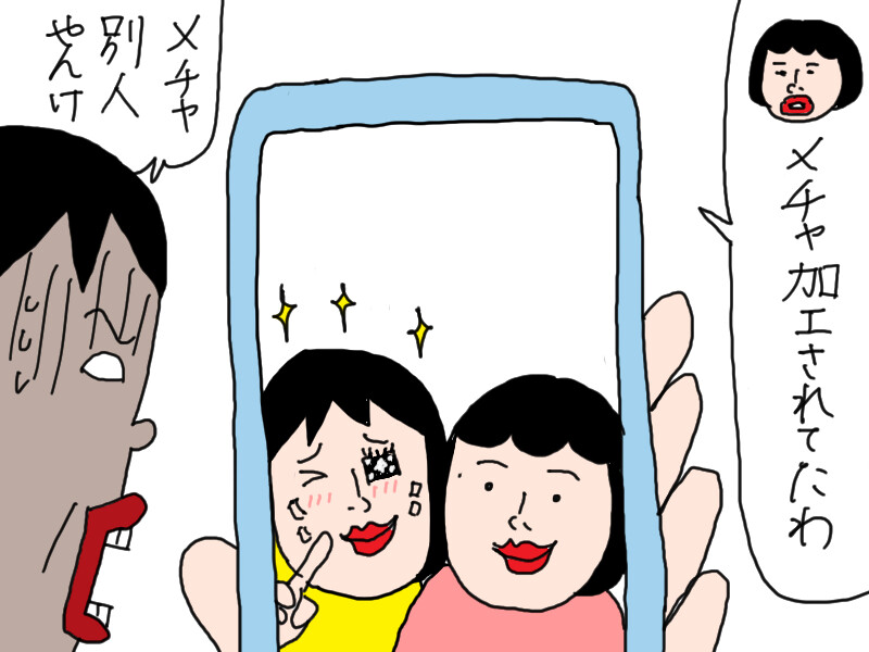 小学生とかはほぼ変わらないのに、我々おばさんは笑うしかないぐらいゴリゴリ加工顔になる。
