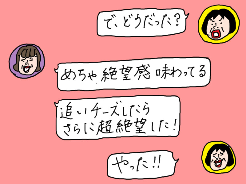 かなり近い感じだと思う。ただ、お店は熱々なので、Bちゃんは熱々にしたくて何度も電子レンジで温め直した結果、少し麺が伸びてしまったそう。あの熱々はなかなか再現できないけど、ホームズパスタの「絶望」が好きな人はぜひ試してみて!