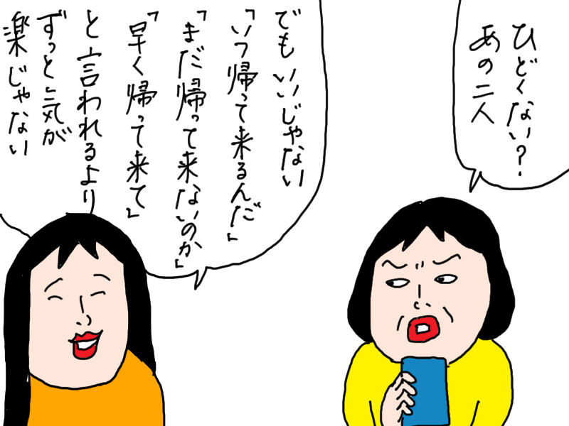 娘が友達に親が1週間泊まりに来てる、って話したら「夫婦喧嘩でもしたの?」と心配されたらしい。