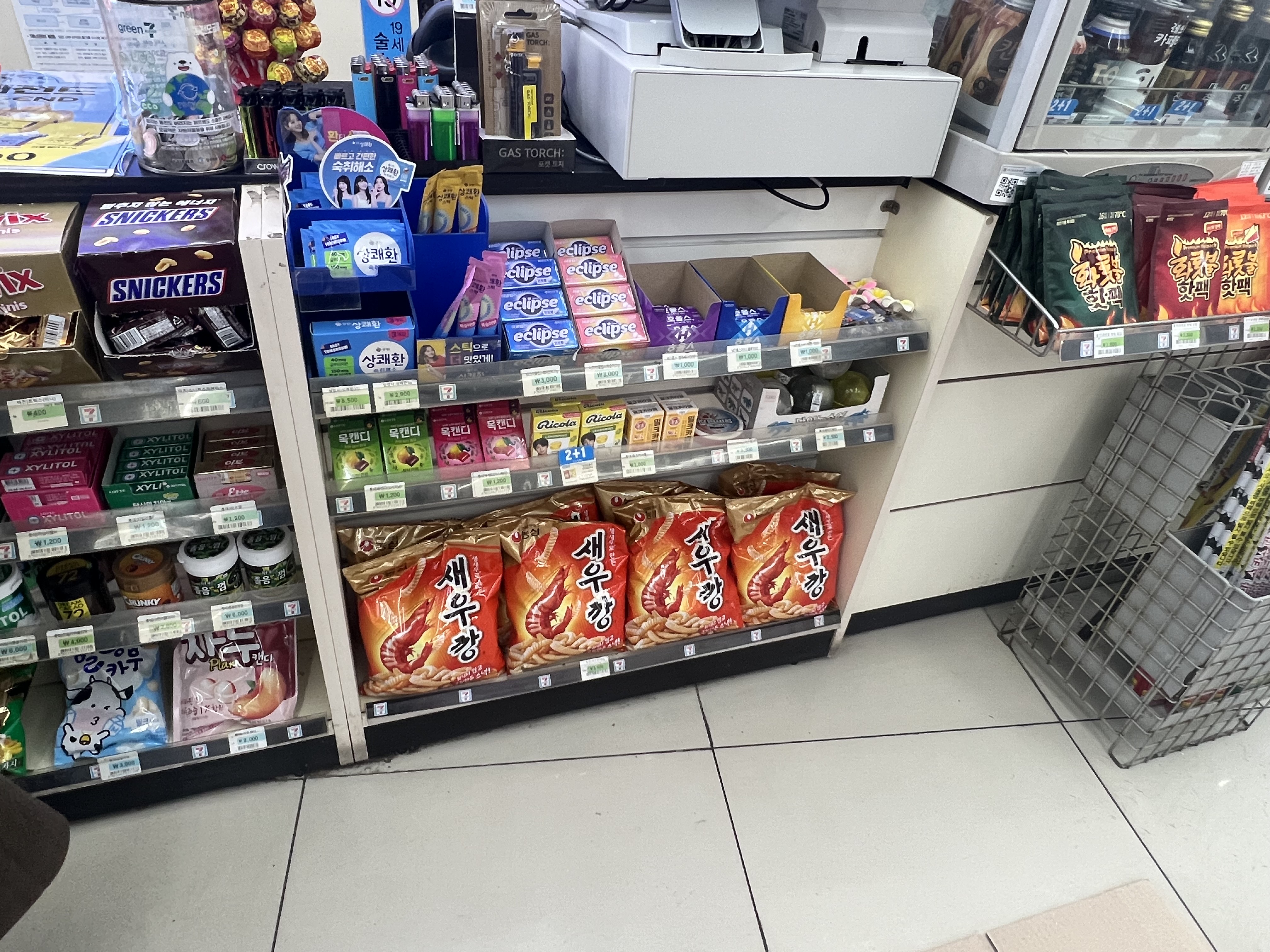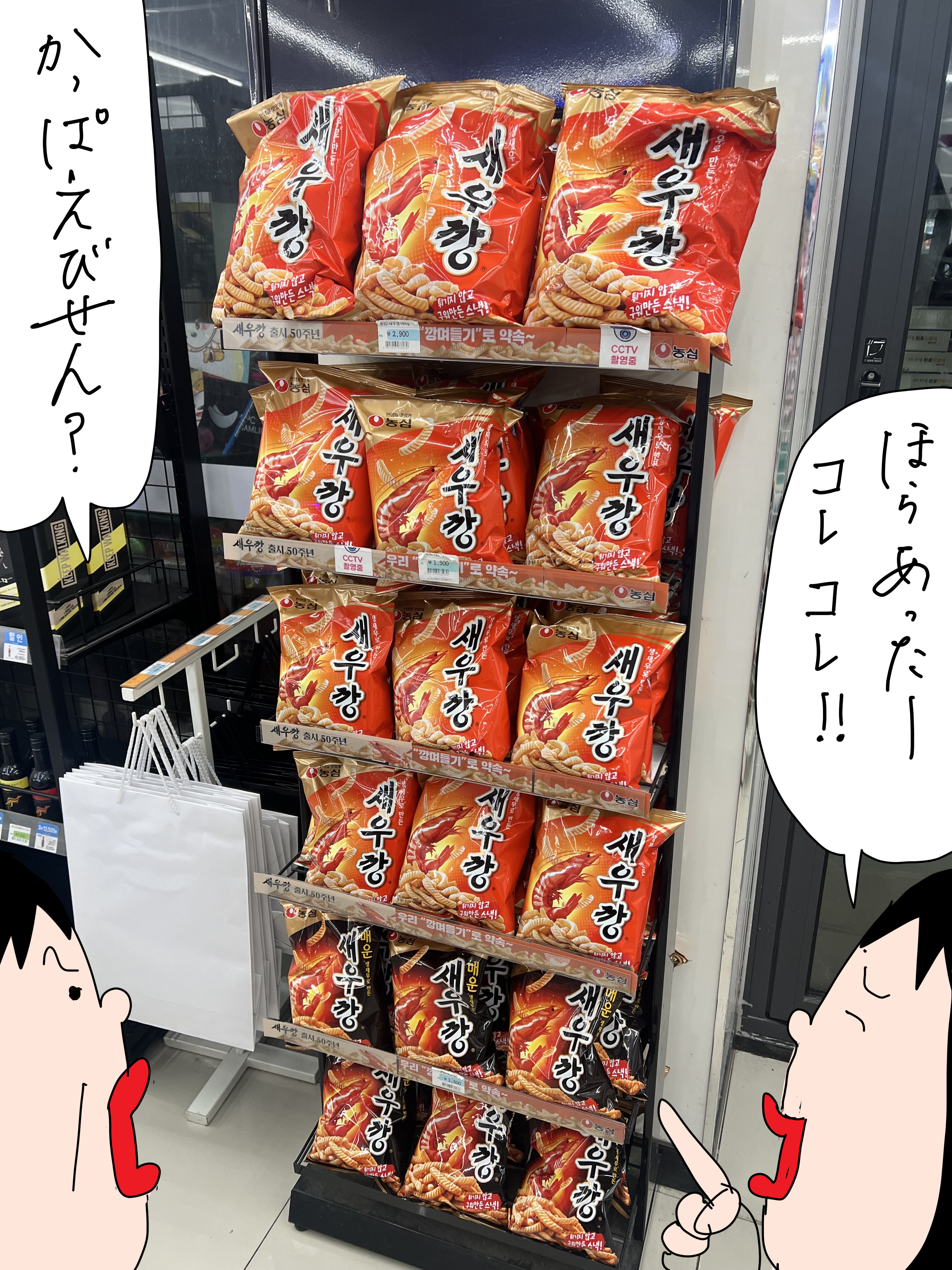 レジの下にもさりげなく並べられたかっぱえびせん。