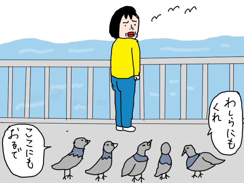 野鳥に人間のお菓子はあげないでほしいなと思いました。