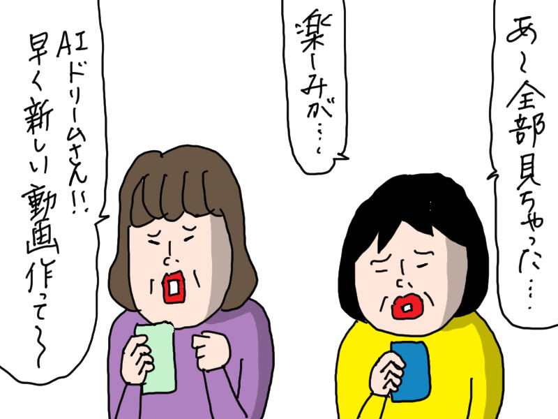私みたいな人が多いのかAIドリームさんの登録者数がすごい勢いで増えている。AIドリームさん、楽しい動画をありがとうございます!