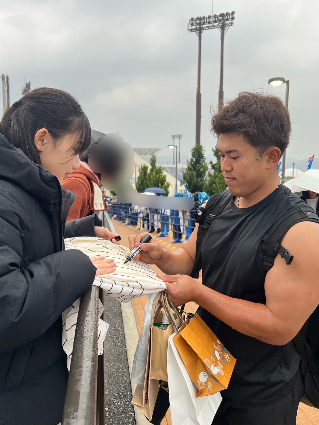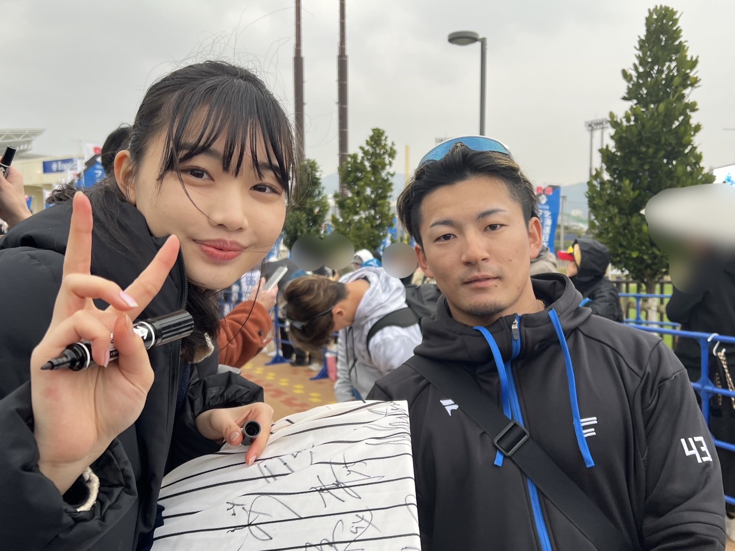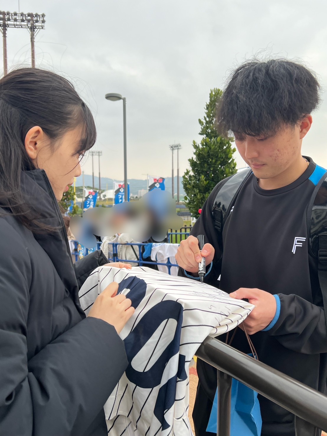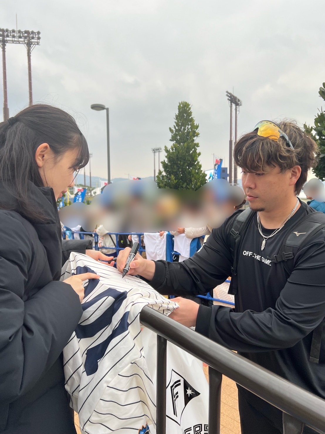 選手待ちしている時、ファンの人たちと話す機会もあり、そこで交流も生まれ、とても楽しかった。同じ球団を応援してることもあるのかもしれないけど、ファイターズファンのみなさん、とてもフレンドリーで優しかった。