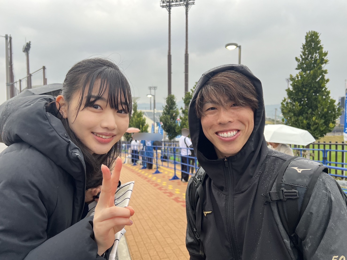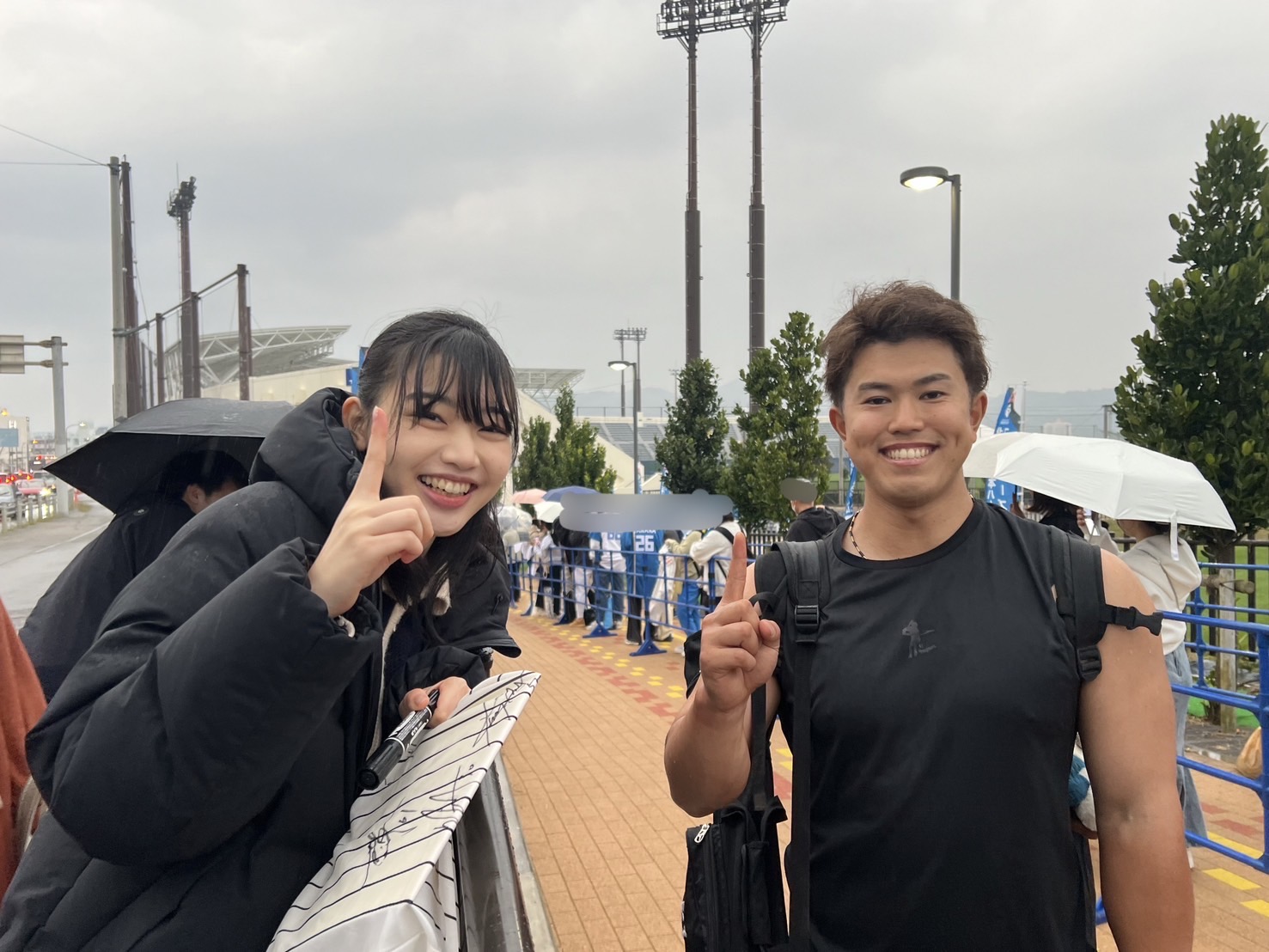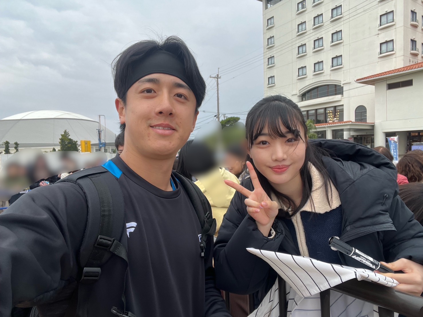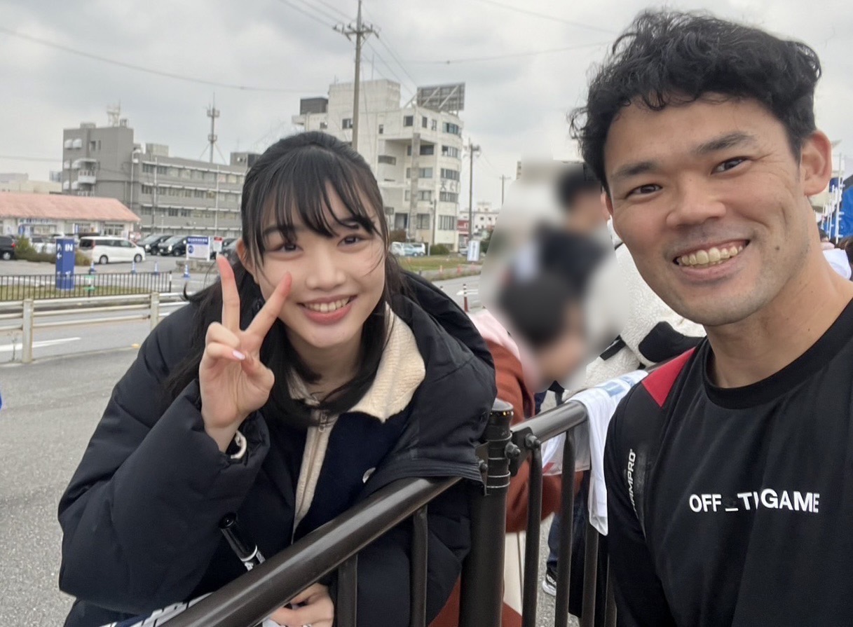 こんなに可愛い女の子に「写真撮って🩷」ってお願いされたら選手もうれしいですよね〜。若さ、可愛らしさ、うらやましいわっ。