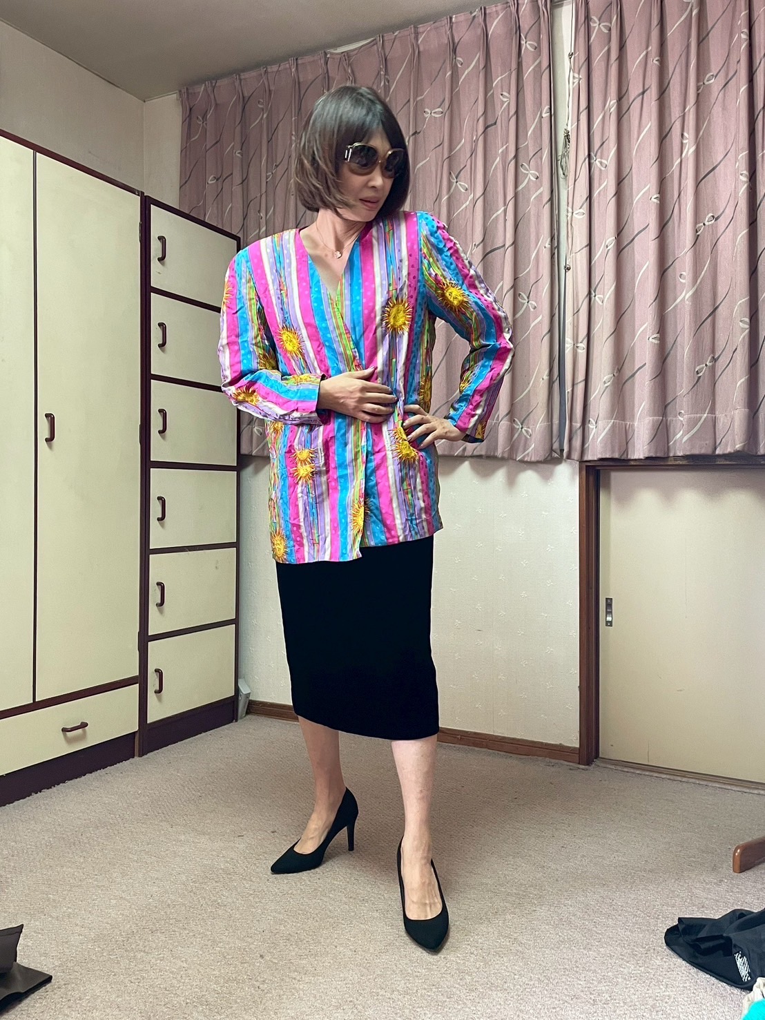 最後のシャツ?ジャケット?デニムと合わすとサイケで可愛い!