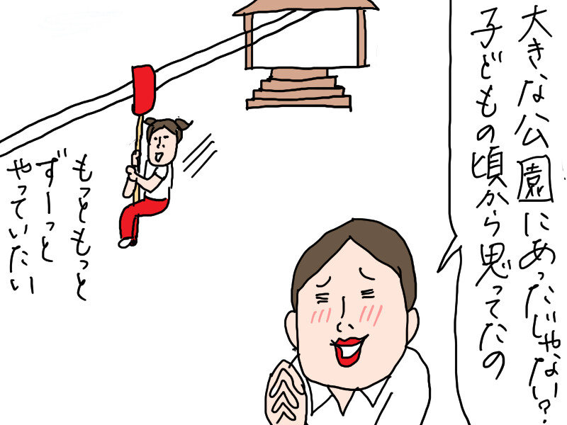 レストランの待ち時間に偶然目の前の公園にあって 家族巻き込んで思いっきりはしゃいでたら、並んでる人にガッツリ見られて笑われてました! あの爽快感が続くのを夢見る気持ちは同じです笑