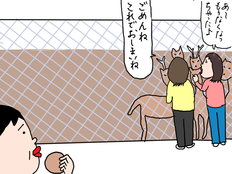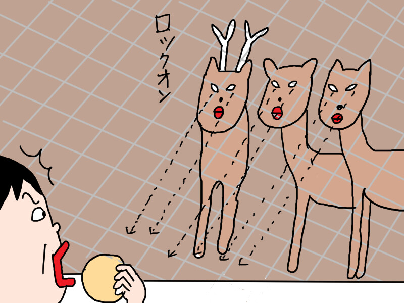 目の前の人から鹿せんべいが