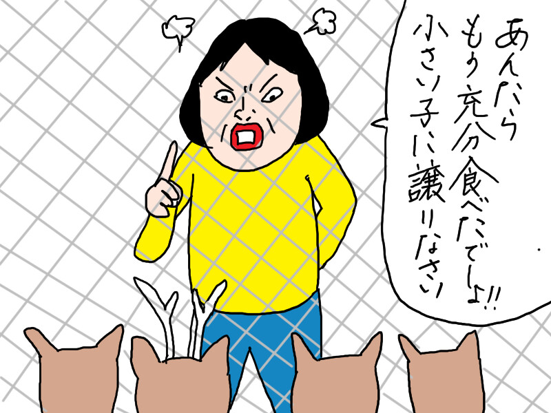 大きいのを押さえつけて小さい子にやっても、他のに割り込まれて取られちゃって