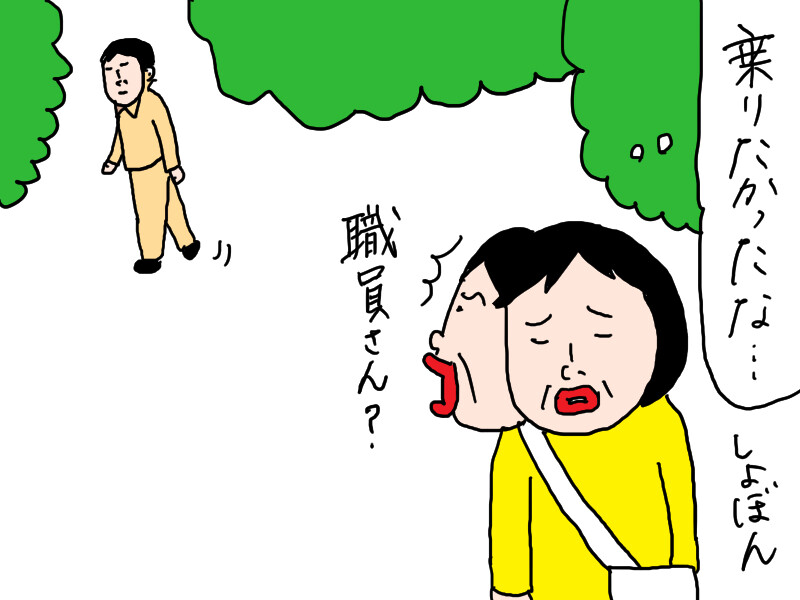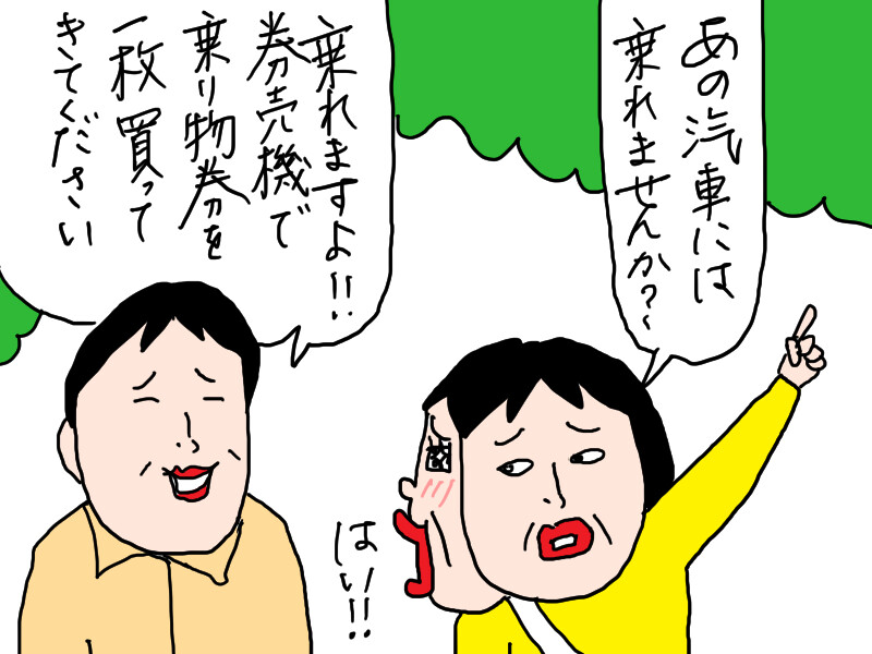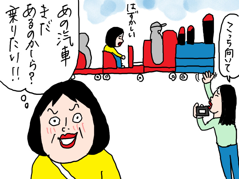 泣きながら、豆汽車に1人乗るおばさん…