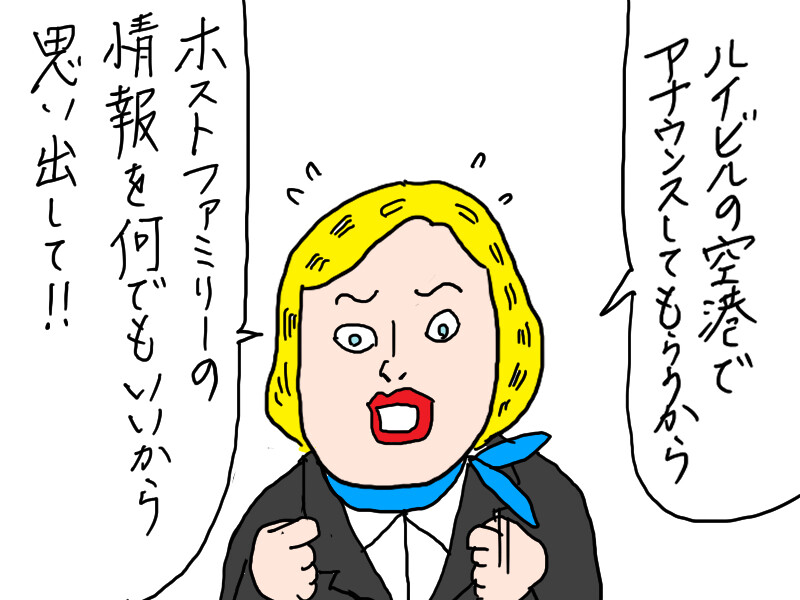 ホストマザーを待たせた挙句、キャンセル扱いになってせっかく到着しても慣れない海外でホストマザーのお宅にたどり着けなかったら?!と思うとこっちまでヒヤヒヤしました…!
