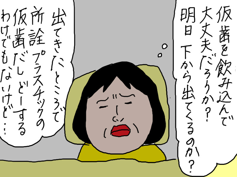 新しい仮歯を作ってもらった。「プラスチックだから、大丈夫だと思いますよ」と言われた。別に体調も変わりない。トイレで注意もしていない。金歯じゃないし。