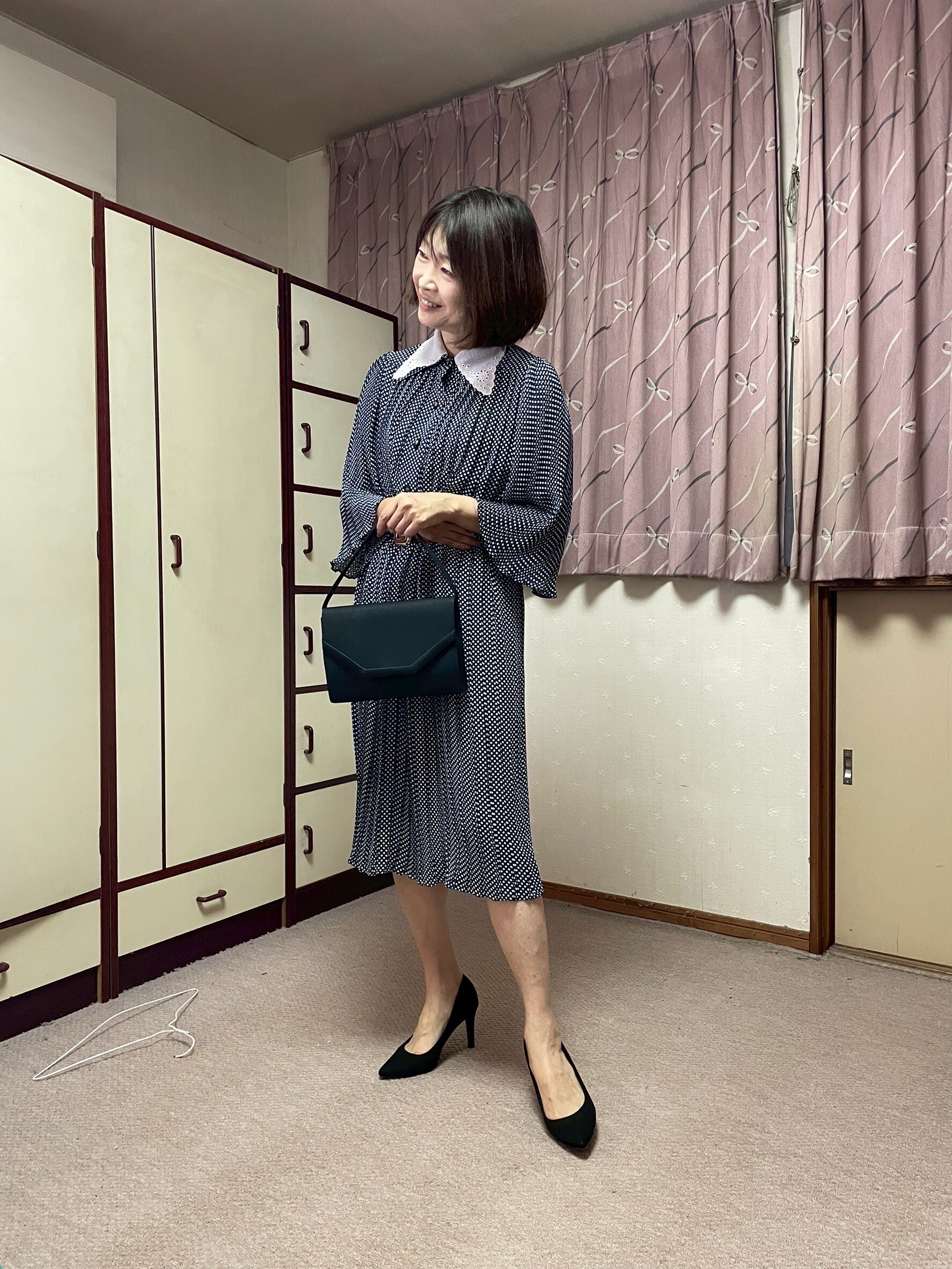 豹柄を着続けた後、ふっと対極の清楚系を着たくなり…着たところ、なんだか落ち着いて、こちらで決めた。
