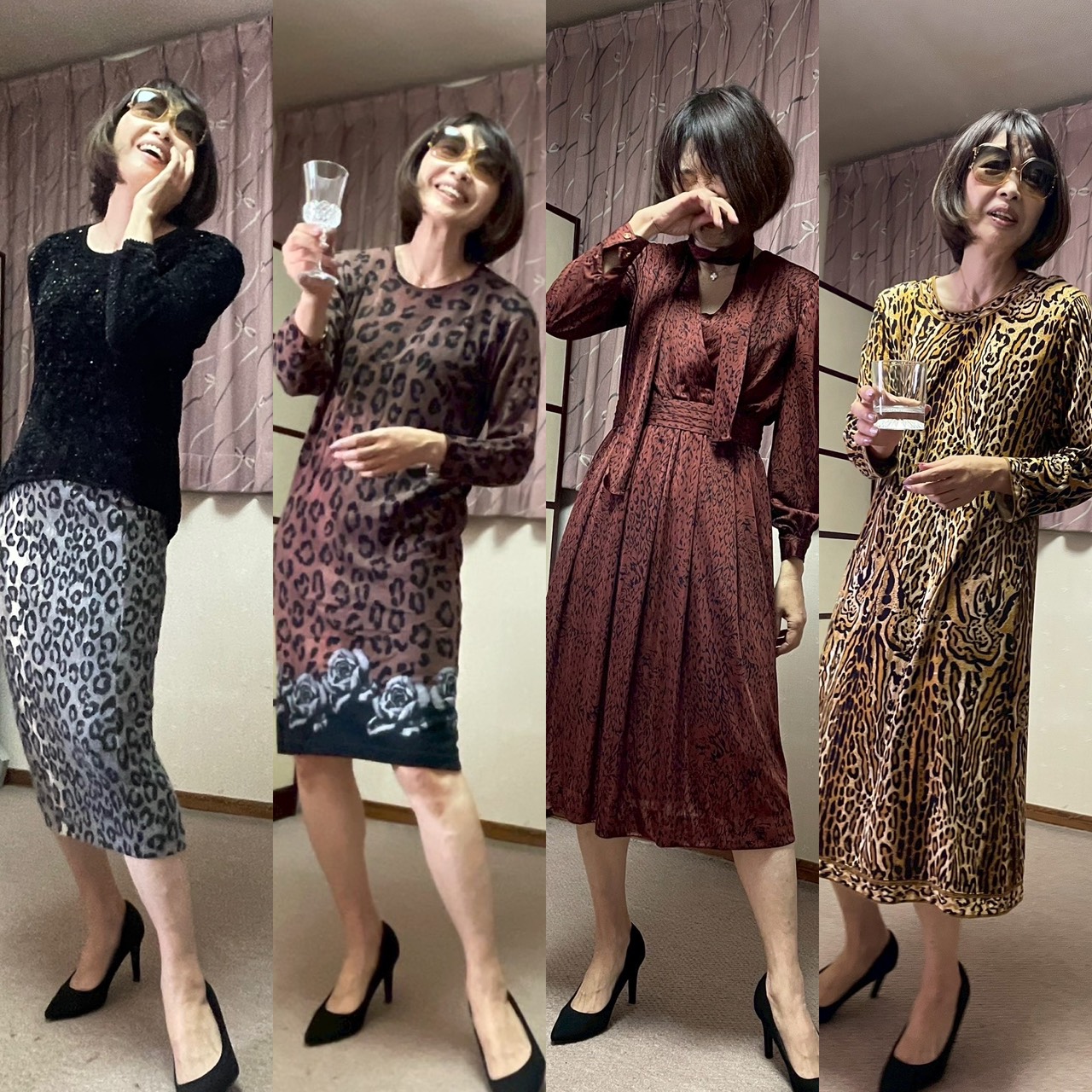 というか、自ずとスナック感漂い、場末感半端ない。右から2つ目のシックな豹柄のワンピースは、この前の横浜・港南区のトークショーに着てしまったし。(医師会のトークショーに豹柄で臨んだって?)